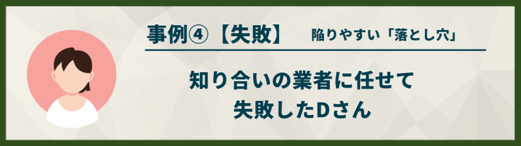 Dさんは、親戚の紹介で「地元の顔なじみの不動産屋さん」に売却を依頼しました。「知り合いなら良くしてくれるだろう」という安心感があったからです。